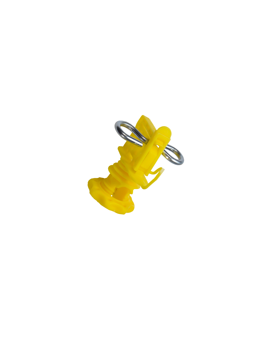 Aislador eléctrico llampec Nº95 (Caja 10 unidades), para puerta eléctrica especialmente diseñado para varillas de 6mm a 14mm de grosor. - Doble dirección. - 70mm de alto x 80mm de largo. - Color amarillo.