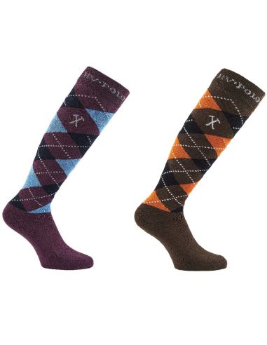 Oferta Pack Calcetines HVPArgyle, Talla 35-38, Color Ciruela-Azul Marino y Marrón-Blanco. Estos clásicos calcetines de rombos presentan colores contrastantes para un efecto divertido y el logo de la marca en el lateral. Estos calcetines modernos son el toque final perfecto para cualquier conjunto clásico y deportivo. Están fabricados con materiales transpirables de alta calidad, ofreciendo un ajuste ceñido y seguro que se adapta a la forma del pie, lo que evita que se deslicen o se plieguen durante la actividad. Los Calcetines HVPArgyle son una opción versátil y elegante para cualquier jinete que busque comodidad y estilo durante las actividades ecuestres.