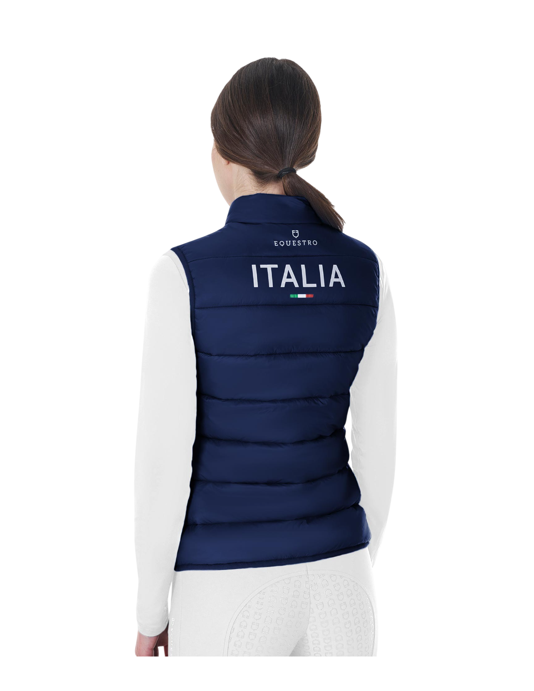 Chaleco ajustado para mujer azul marino Equestro X FISE, chaqueta sin mangas para mujer Equestro X FISE de corte ajustado en tejido técnico y transpirable, diseñada para el máximo confort y practicidad.
