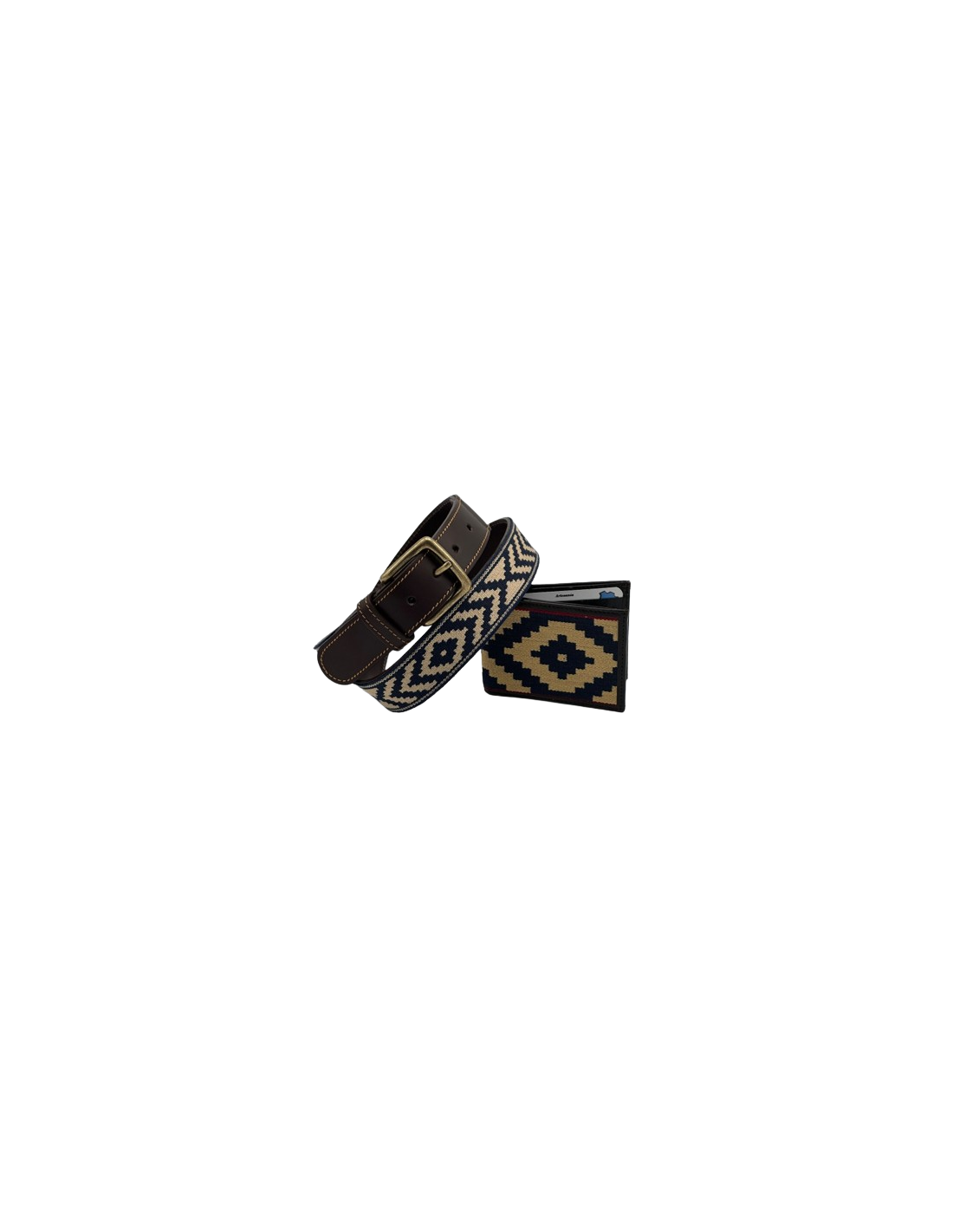 Pack Guarda Pampa, cinturón confeccionado a mano, con base y hebilla de piel vacuna de alta calidad. Cinta de guarda pampa argentina, diseño creado por las culturas originarias de Pampa y Patagonia. Cartera con cinta estampada Guarda Pampa original Argentina. Realizada a mano por los mejores artesanos con una piel vacuna de una excelente calidad. Posibilidad de seleccionarla con o sin monedero. Capacidad de 9 tarjetas (sin monedero) o 6 tarjetas.