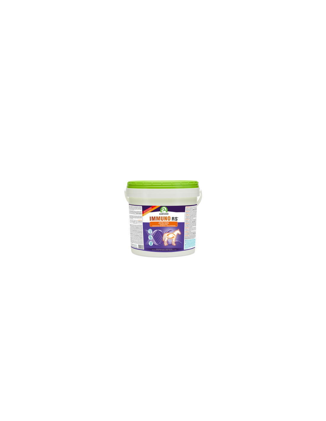 IMMUNO RS 5 KG, es un alimento complementario formulado por AUDEVARD Laboratories. Ha sido diseñado para proporcionar un soporte nutricional adaptado a potros y caballos cuya vida diaria es irregular o interrumpida (entrenamientos, competiciones, viajes), así como a caballos frágiles.