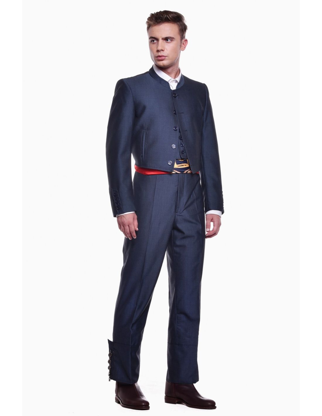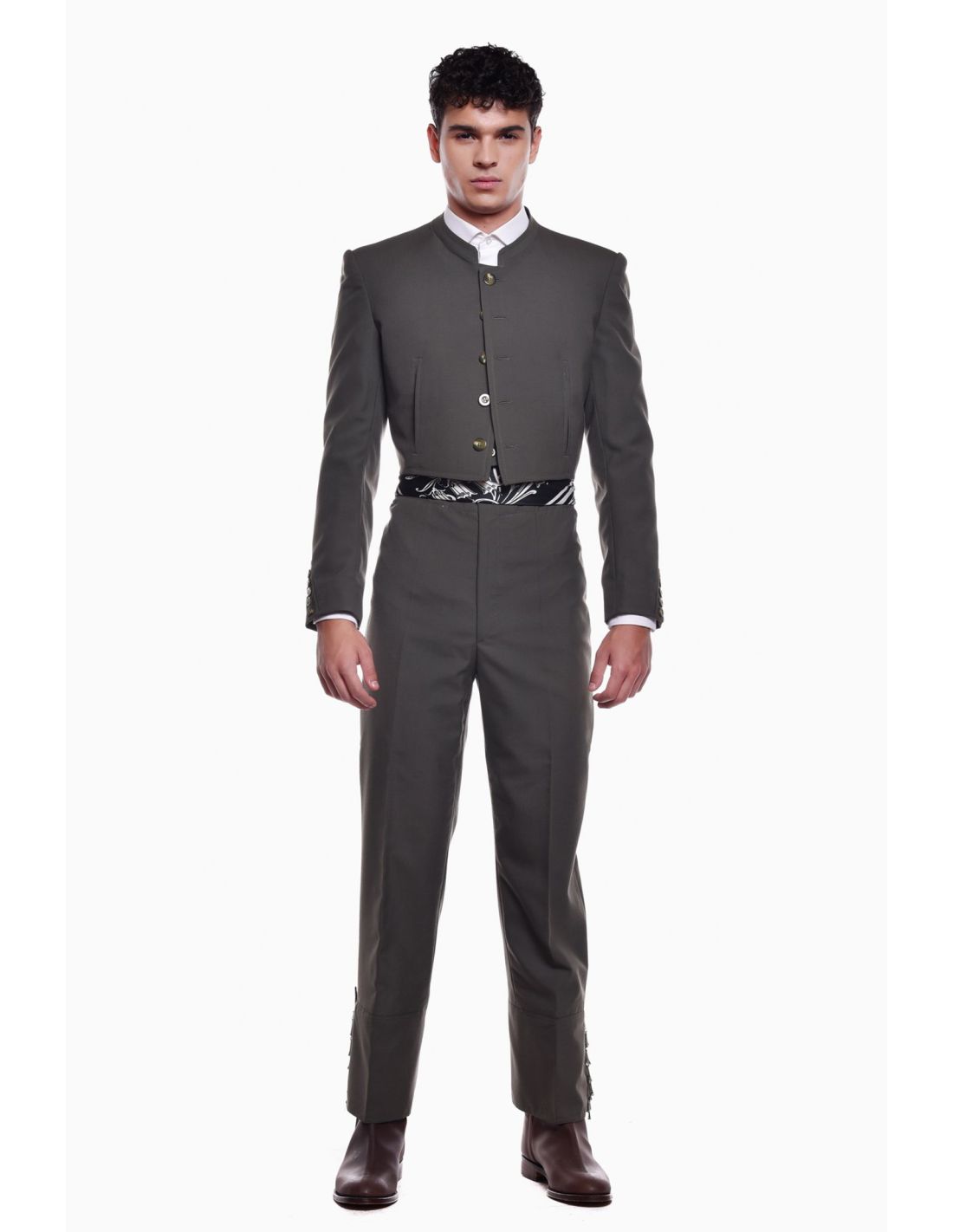 Traje Campero Completo Alpaca Traje Corto Hombre, este traje campero completo alpaca es de 3 piezas (chaqueta + chaleco + calzona de caireles) en tejido de alpaca, botón nacar o jaspeado. Chaqueta y chaleco con forro de satén, calzona forrada en blanco a pierna completa. Traje indivisible, se sirve de una pieza. Lana fría en mezcla con mohair de alta calidad. Toque elegante y distintivo, la alpaca posee un cierto brillo característico del tejido.