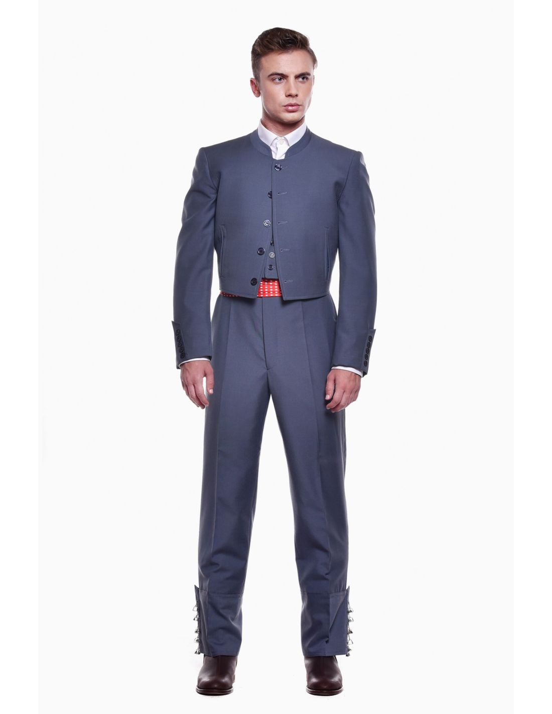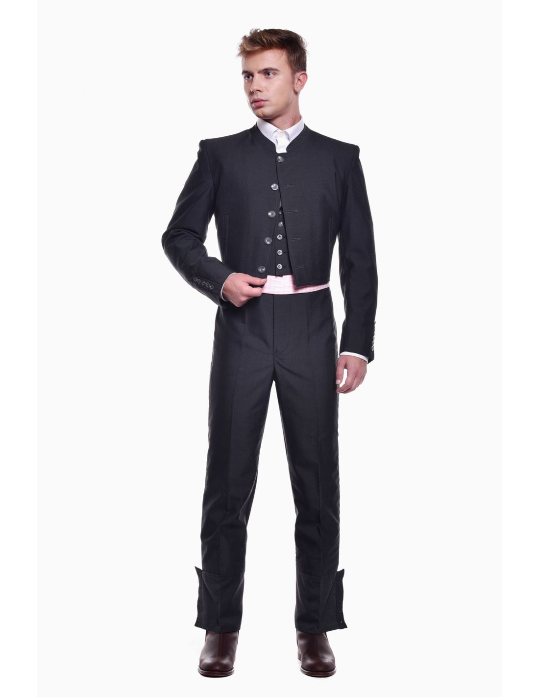 Traje Campero Completo Alpaca Traje Corto Hombre, este traje campero completo alpaca es de 3 piezas (chaqueta + chaleco + calzona de caireles) en tejido de alpaca, botón nacar o jaspeado. Chaqueta y chaleco con forro de satén, calzona forrada en blanco a pierna completa. Traje indivisible, se sirve de una pieza.