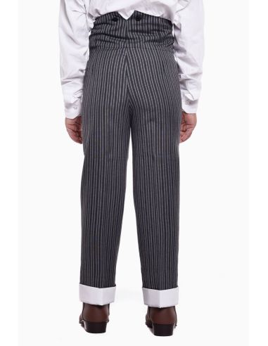 Calzona Vuelta J&P Raya Sin Forrar Traje Corto Niña, calzona de tejido 100% poliéster con vuelta blanca/cruda, sin forrar. Botones externos para tirantes. Adecuada con chaquetas camperas. Tejido fino y resistente. Muy combinable. A la hora de la toma de medidas de calzonas, aconsejamos pedir una talla más en tejidos no elásticos. Para la correcta indumentaria a la hora de montar, si se viste la calzona de vuelta se deberá llevar el boto de caña alta y el zahón, mientras que con la calzona de caireles se deberá llevar el botín corto y la polaina.